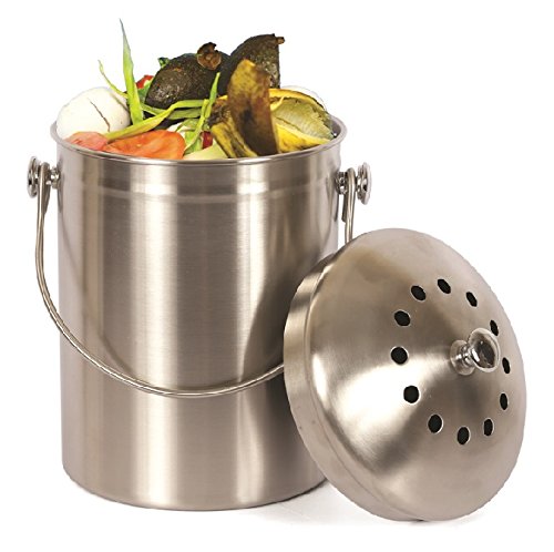 Estilo Stainless Steel Compost Pail, 1 Gallon Compost Bin, 2 Free Odor Absorbing Filters Included
