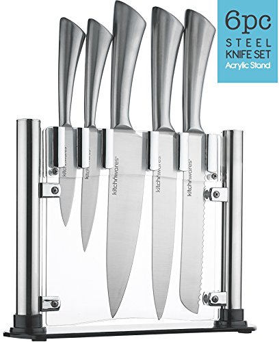 6 Piece Stainless Steel Knife Set With Acrylic Stand - Cutlery Set For Cutting & Carving Great for Use in Cooking at Home And Commercial Kitchen - By Kitch N' Wares